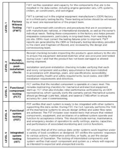 Généralement, cinq niveaux de tests constituent le processus global de mise en service d’un centre de données :